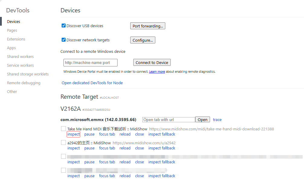 与电脑链接,在安卓手机启用 USB调试 ,启用后在PC打开任意浏览器,输入chrome://inspect/ 来使用电脑来调试安卓浏览器