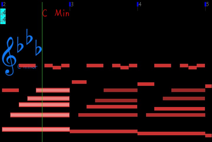 如果确实是这样处理的话,那么大小调、升降号可能就不好判断了,需要结合和弦。因此会出现三度的偏移。